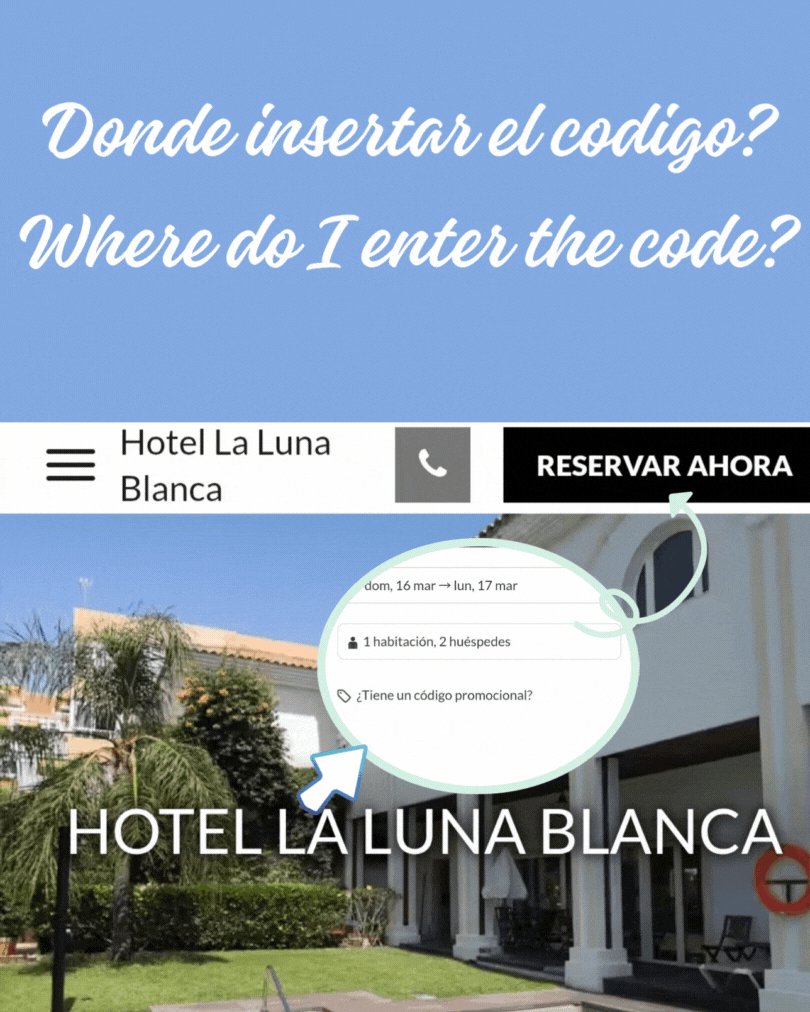 Introduce el siguiente código promocional para disfrutar de una oferta especial en tu reserva: